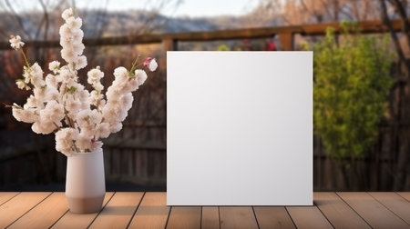White greeting card with blank front, realistic on a mockup template in a wooden table in a easter luxuty background in home inside,