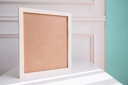 A versatile blank wooden frame on a rustic surface, perfect for showcasing art or messages in a home or office setting, providing a natural and inviting aesthetic.