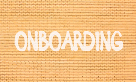 Onboarding success symbol. Concept word Onboarding on beautiful big brown brick wall. Beautiful big brown brick wall background. Business onboarding success concept. Copy space.