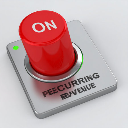 A 3D render of a large red button being switched on, activating a recurring revenue stream.