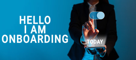 Text sign showing Hello I Am Onboarding. Business idea Action Process of integrating a new employee into an organization