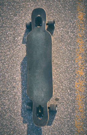 longboard on asphalt without people, evening photo