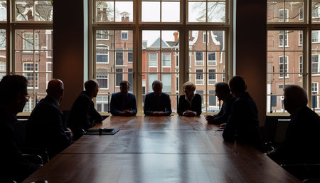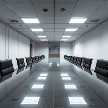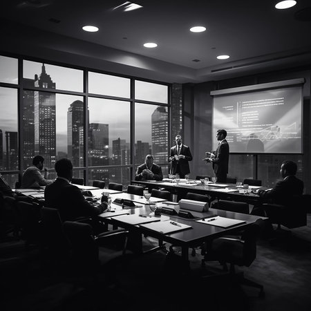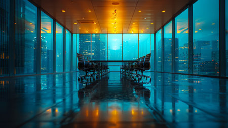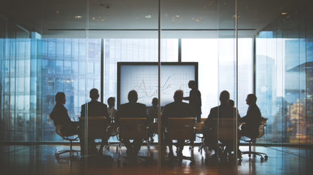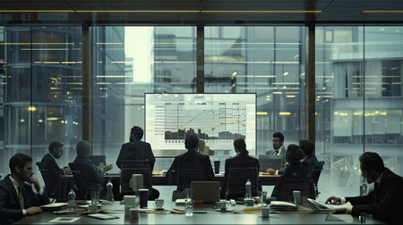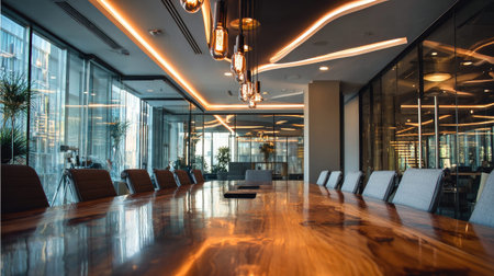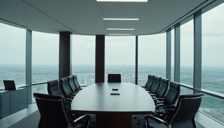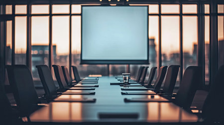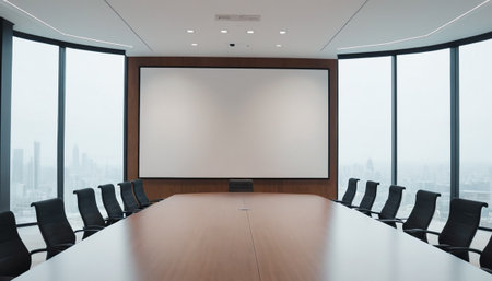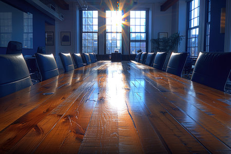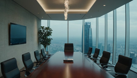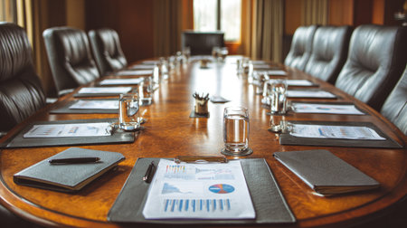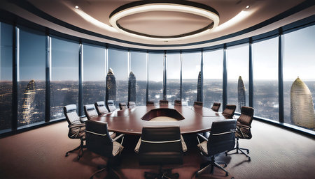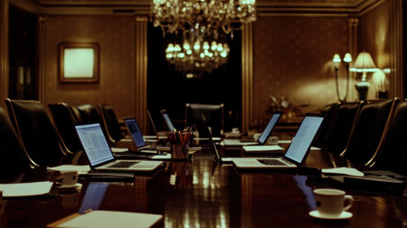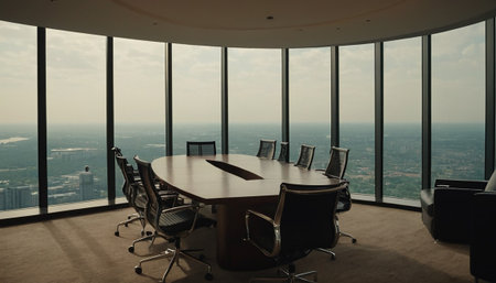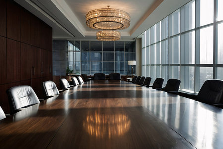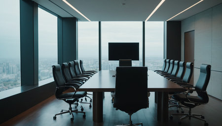 The stage is set for a pivotal meeting in this state-of-the-art corporate boardroom.