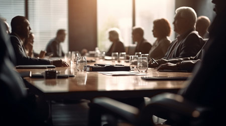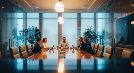 A group of influential business leaders conducting a meeting in a high-end boardroom created with Generative AI