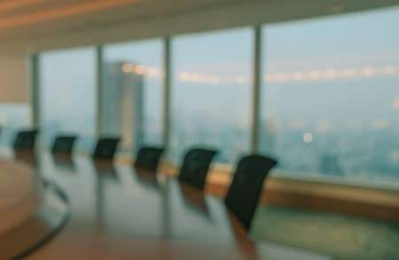Blur image of empty boardroom with window cityscape background. Business concept