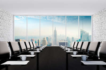 Meeting room in modern office building with panoramic view on New York City.
