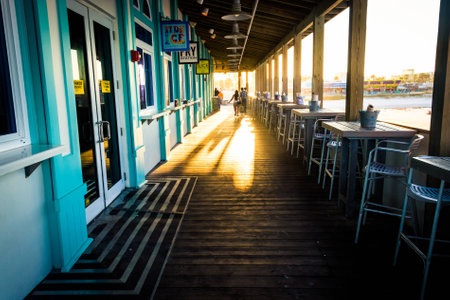 Dining area and businesses on the pier in Daytona Beach, Florida.