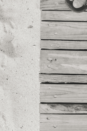 wooden floor and beach sand, look on top