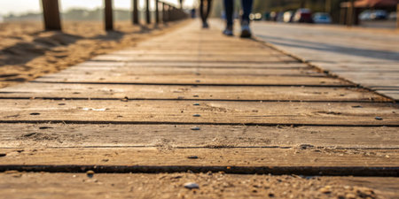 Wooden sandy beach boardwalk background closeup image