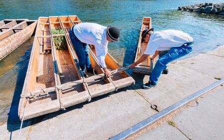 Sromowce Nizne, Poland - August 26, 2015; Traditional rafting on the Dunajec River on wooden boats. The rafting is very popular tourist attraction in Pieniny National Park