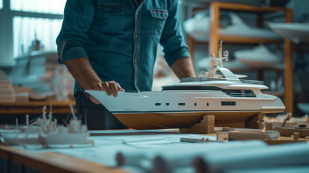 Shipyard workshop with marine engineer and naval architects designing ships AI generated