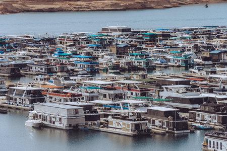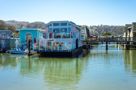 Sausalito, USA - September 23, 2015: The colorfully painted House Boats in the outskirts of the country