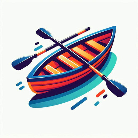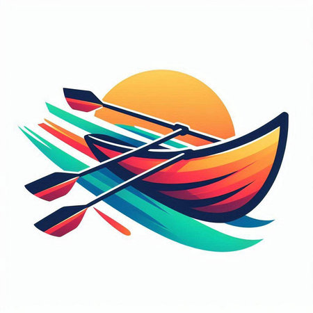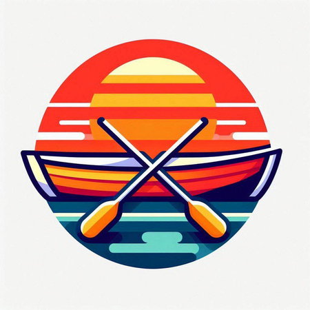 Illustration of a rowing boat with a sunset in the background
