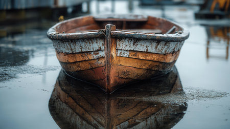 old wooden row boat in a abandoned shack