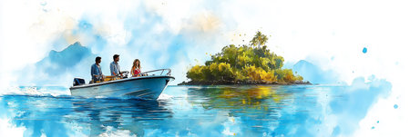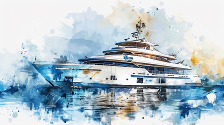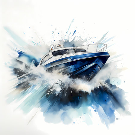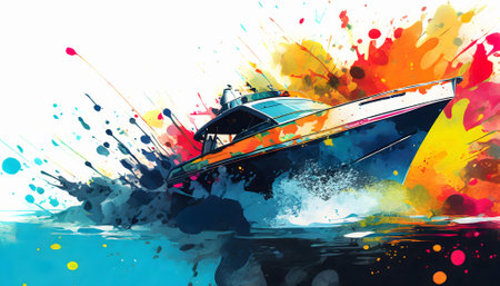Speed boat in sea, Speed boat on watercolor.