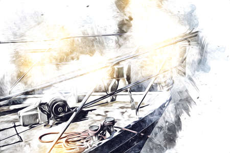 Ship's ropes on the yacht in Ligurian Sea, Italy. Close-up of a mooring rope