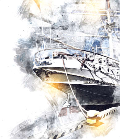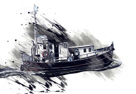 Antique boat sea motive drawing handmade illustration art vintage drawing