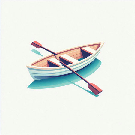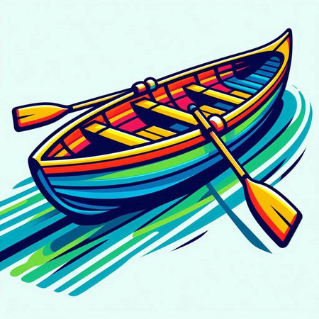 Vector illustration of a boat with paddle on the background of stripes.