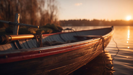 Fishing canoe on lakeside