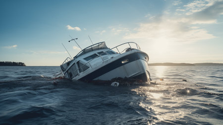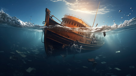An AI generated illustration of a boat sinking in the water - climate change concept