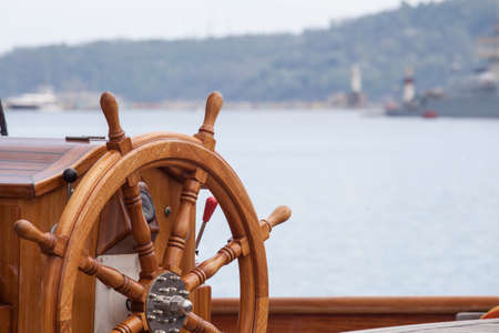 Steering wheel of a yacht in the port of Istanbul, Turkey.
