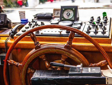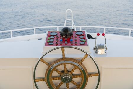 steering wheel on a luxury yacht.