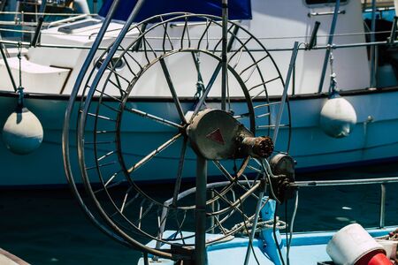 Limassol Cyprus May 14, 2020 Closeup of a boat moored in the marina of Limassol in Cyprus island