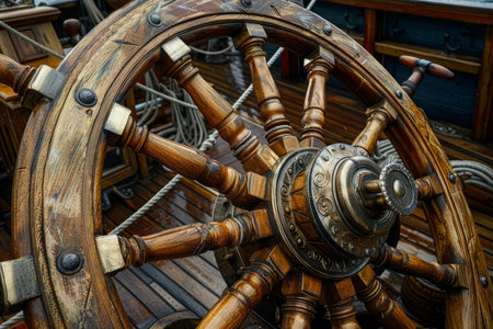 detail of steering wheel on a sailboat, created with generative ai