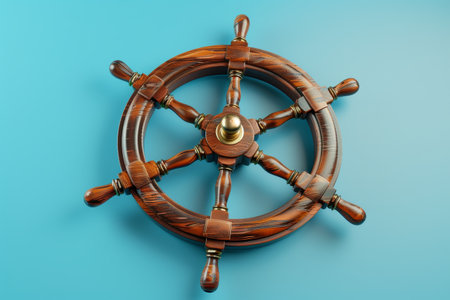 Vibrant Blue Wooden Ship Wheel on Bright Yellow Background for Nautical and Maritime Theme Decor and Design Inspiration AI Generative