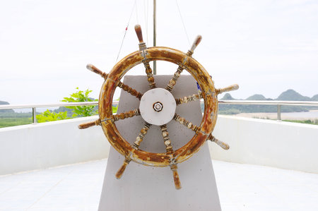 a navigatiing wheel on ship