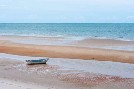 Boat moored at Praia dos Ingleses, Florianópolis, Brazil. Vessel used for fishing for mullet, a fish that migrates to mate in warmer areas.