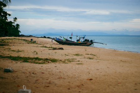 Traditional Thai boat. Traditional Thai long tail boat on the beach - Thailand.
