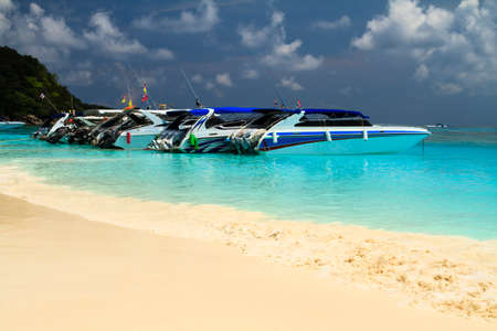 Fishing boats moored on the beach thailand
