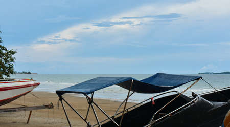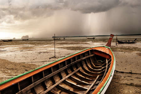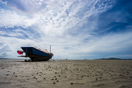 Fisherman boat on the ground at the beach.