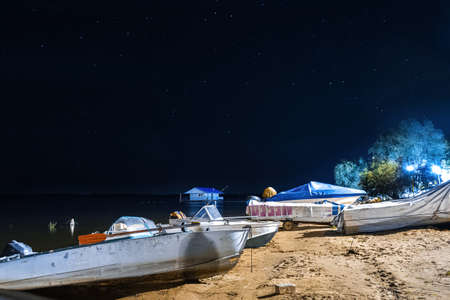 Boats on the night river bank.