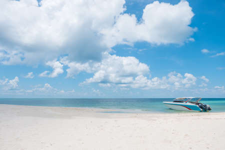 Beach, Speed Boat, and Blue Sky