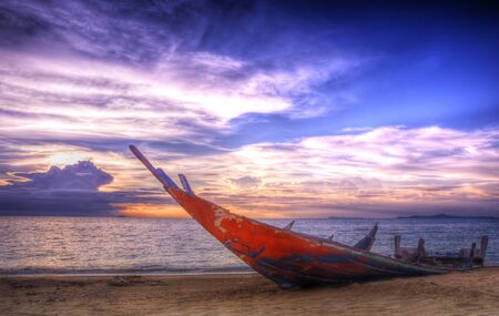 Boat on the beach in the twilight time
