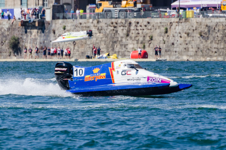 PORTO, PORTUGAL - AUGUST 1, 2015: Mike Szymura (GER) during the U.I.M. F1H2O World Championship in Porto, Portugal.
