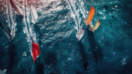 Sailing Sport: Beautiful Aerial Landscape of Yachts in Action