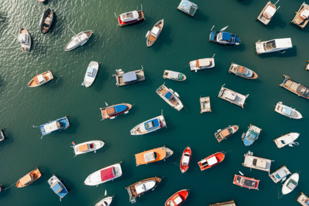 Generative AI : Aerial view of boats in Suadiye district on the Marmara Sea coast of the Asian side of Istanbul Turkey