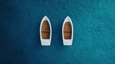 Rowing boats glide smoothly across shimmering turquoise water, creating beautiful contrast with deep blue hues. scene captures essence of teamwork and adventure
