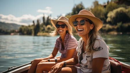 summer boat happy friends young women weekend trip cheerful lifestyle yacht. Generative AI.