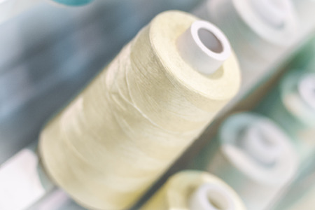 Colored thread coils , Colorful yarn on spool, yarn on tube, cotton, wool, linen thread