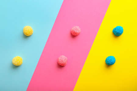 Sweet candies on color background