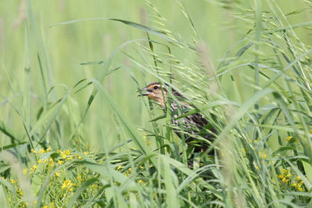 Female red winged blackbird Agelaius phoeniceus perches in a swamp in Naples, Florida