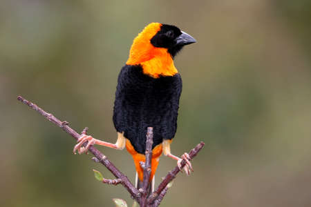 beautiful closeup of a male village weaver bird sitting on a tree branch, popular and colorful bird specie from Africa