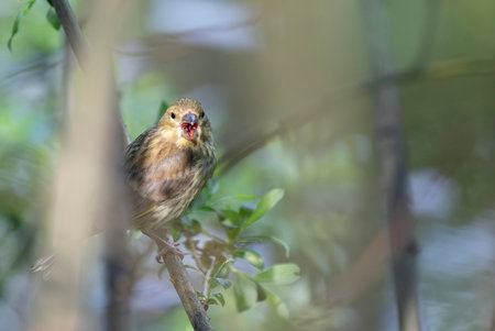 Streaked Weaver Ploceus manyar in nature at Phetchaburi in Thailand