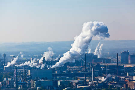 industrial plant in upper austria, symbolic photo for air pollution and climate change