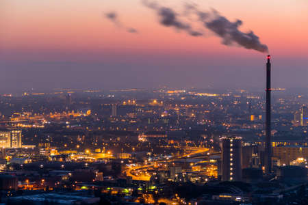 industrial cityscape with with smoking factory, ecology and pollution concept