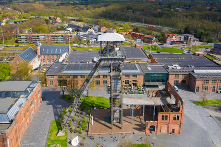 Genk, Belgium, April 2022: View on one of the coal mine shafts of C-mine in Genk, Belgium